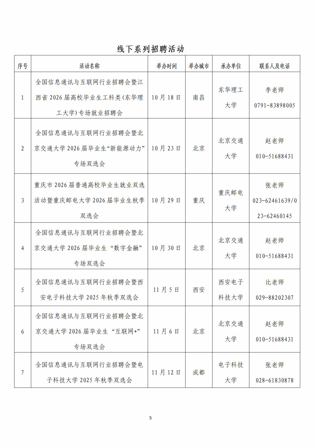 全国信息通讯与互联网行业面向2026届高校毕业生秋季招聘活动