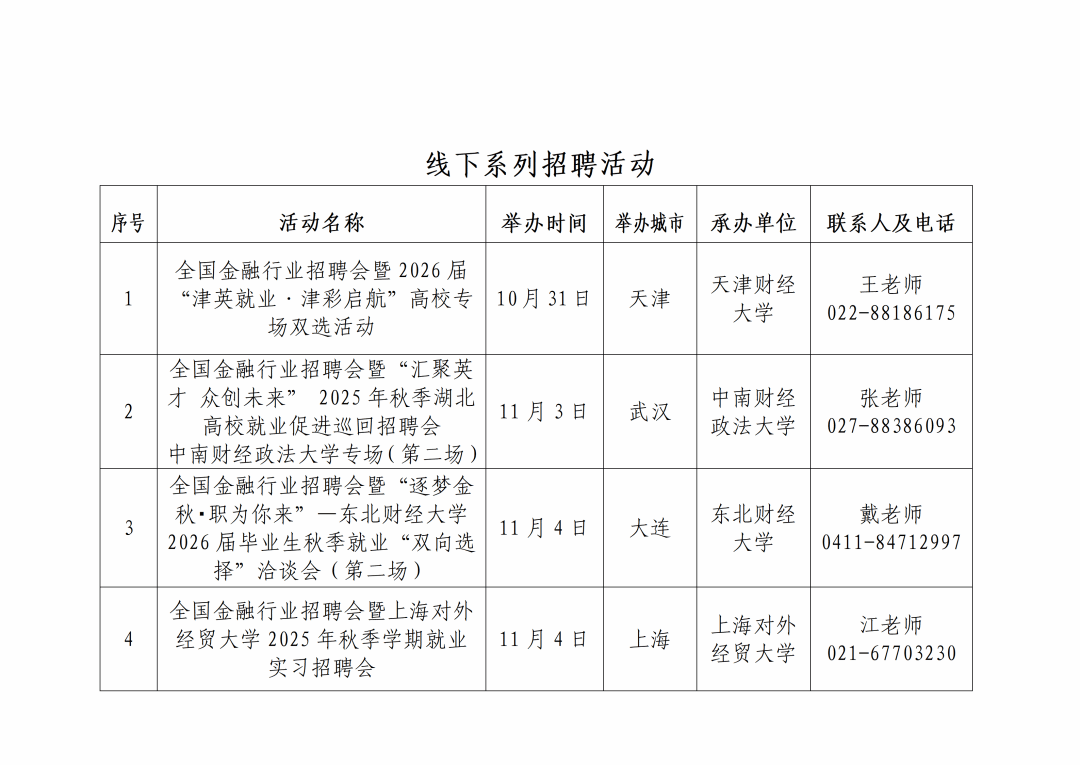全国金融行业面向2026届高校毕业生秋季招聘活动
