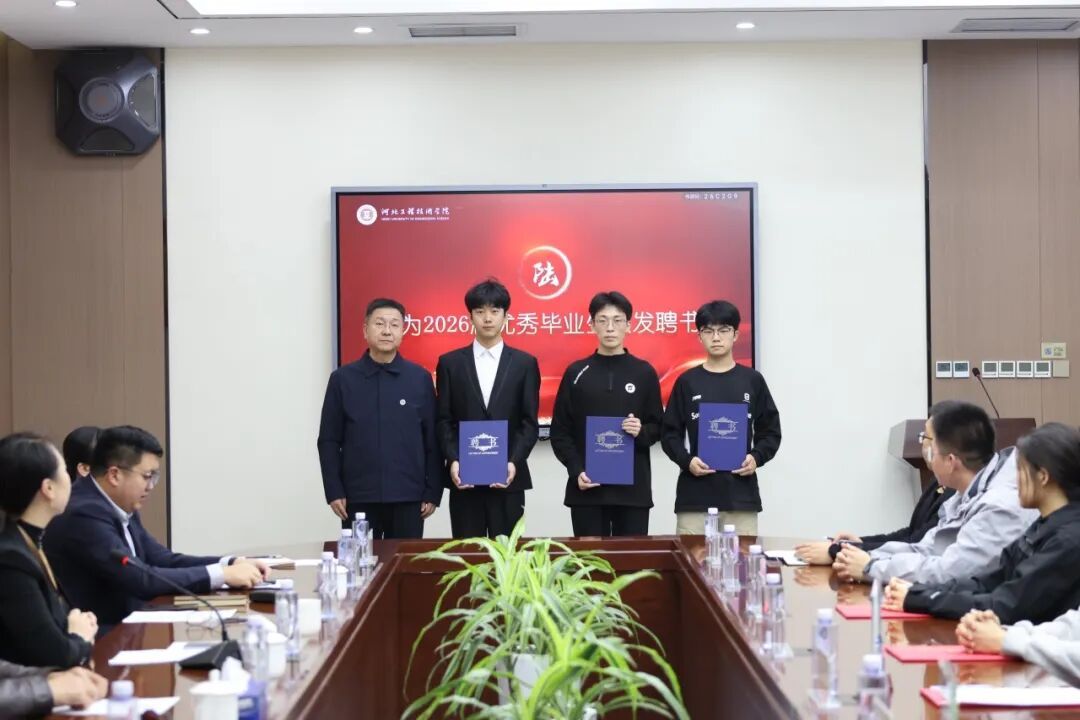 活动的尾声,校领导为吕广嵩等优秀毕业生颁发了校友聘书,象征着母校的牵挂与传承的延续。这场欢迎会,不仅是一次庆祝,更是一次精神的交接。吕广嵩等同学从挫折走向成功的真实经历,为在校生树立了触手可及的榜样;整个团队所积累的宝贵经验与展现出的精神风貌,也为即将启幕的大学生职业生涯规划大赛等赛事注入了强大信心,营造了“勇于追梦、勤于圆梦”的积极氛围。